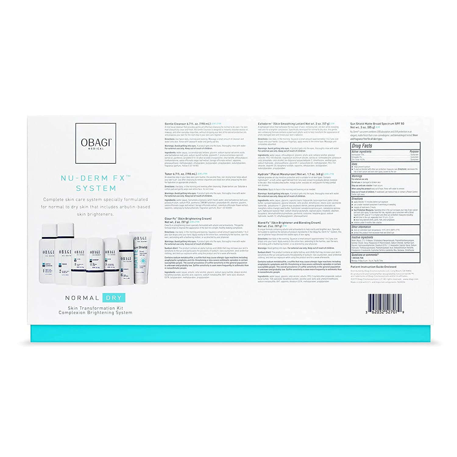 Obagi Medical Nu-Derm System - Normal to Dry Bundle Including: Gentle Clearance, Toner, Clear, Exfoderm, Blend, Hydrate, and Sun Shield, Pack Of 1